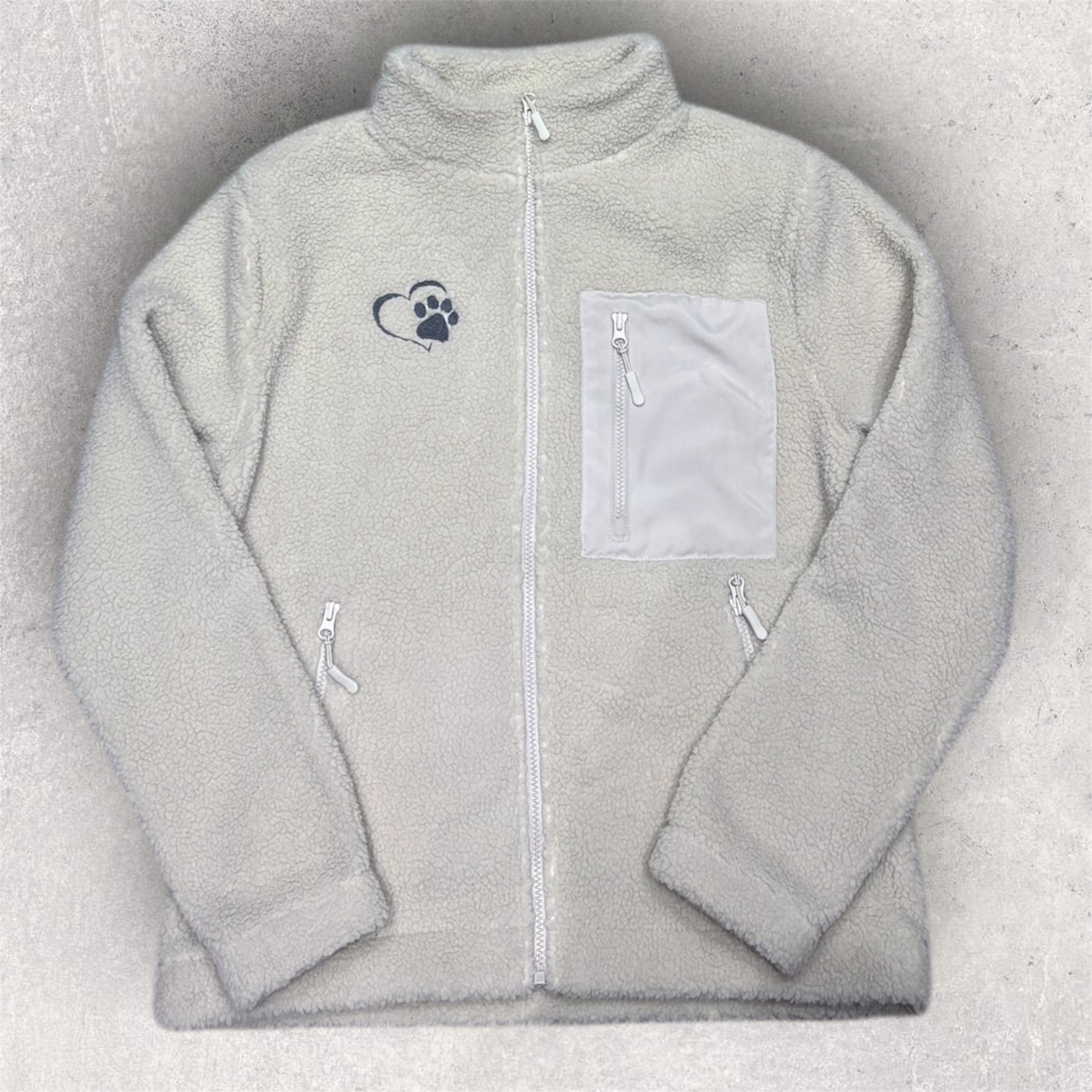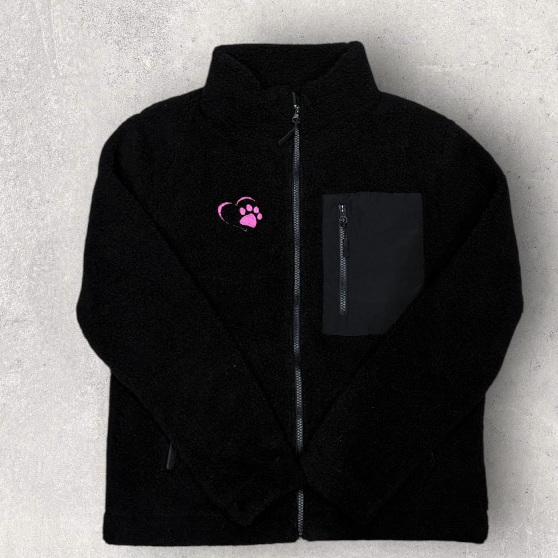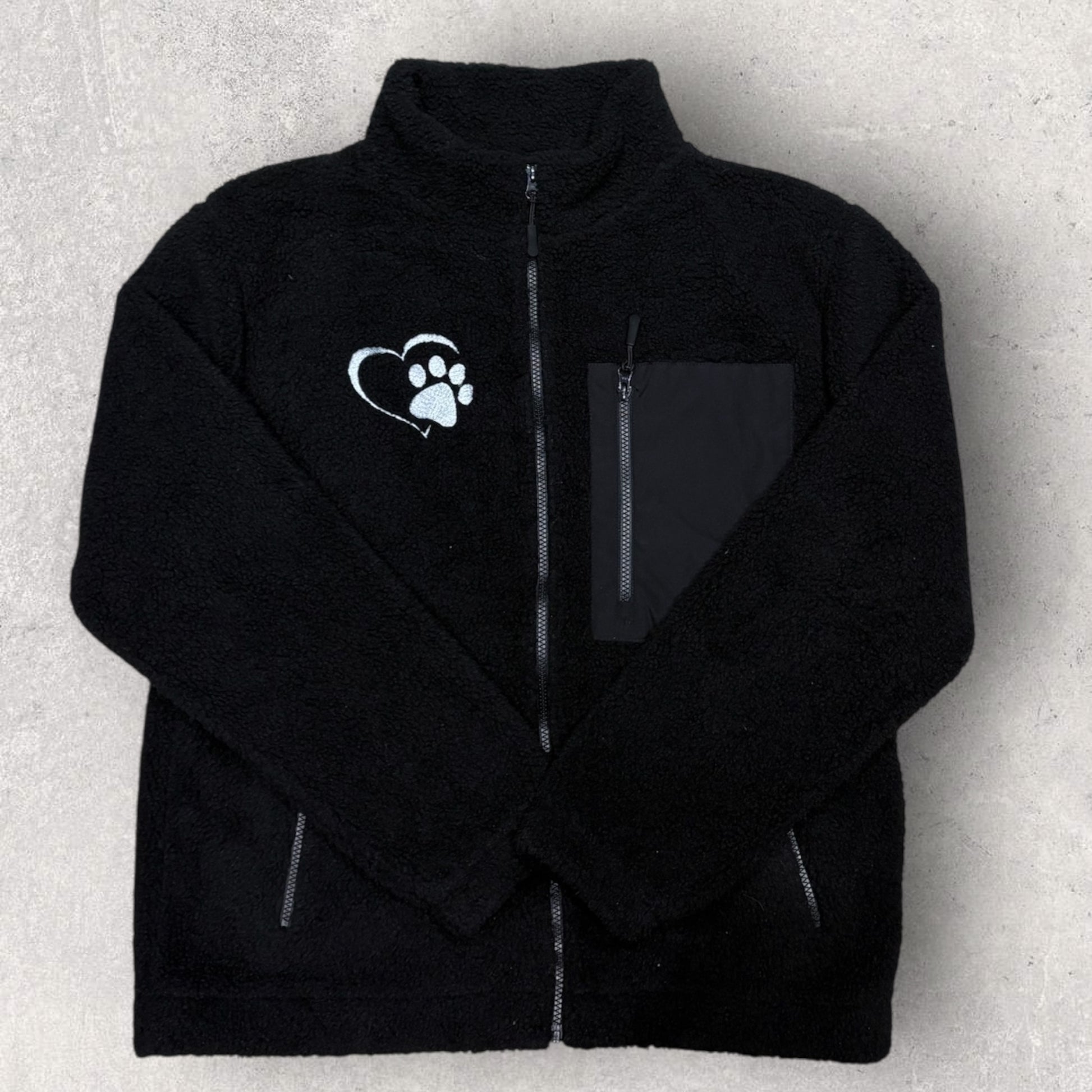 Our Borg Fleece Zipped Jacket is the perfect blend of warmth, comfort, and meaningful detail. Crafted from ultra-soft borg fleece, this jacket is designed to keep you snug on chilly days while adding a stylish, heartfelt touch with its embroidered heart paw design.